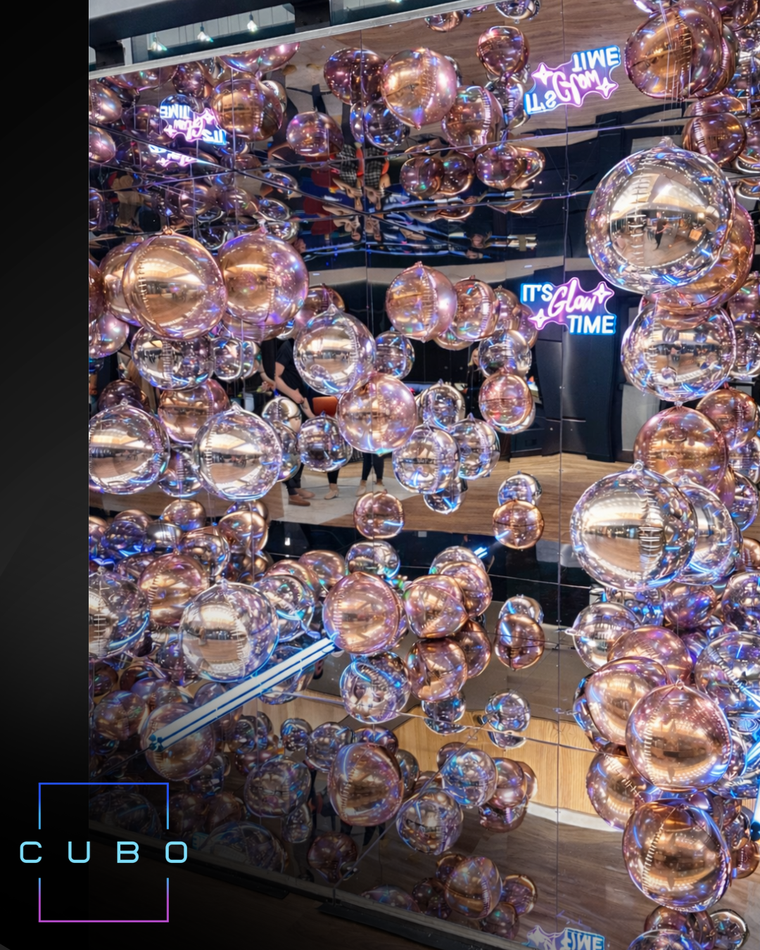 Our mirrored cube booth experience rental features sleek architectural styling and immersive lighting designed to elevate any venue.